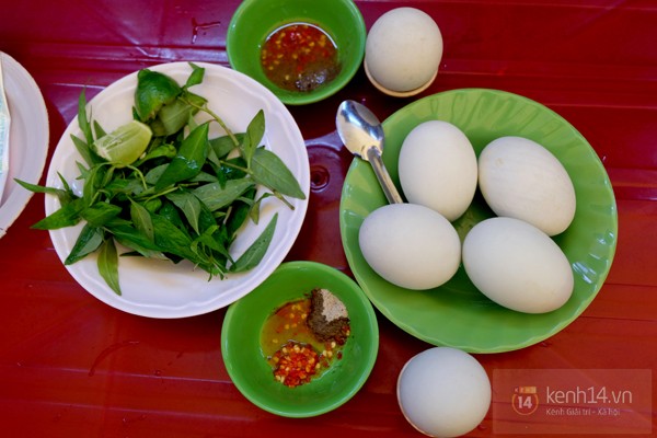 Theo nhiều khách hàng, ngoài sự khác biệt trong cách luộc trứng của quán , những gia vị để ăn trứng vịt lộn cũng không kém phần hấp dẫn. Muối dùng để chấm được hầm kĩ, giã mịn, có độ mặn vừa, mùi thơm nhẹ nhưng không gắt của tiêu xay. Hơn nữa, ớt xay do quán tự làm có mùi thơm từ tỏi bằm và ngọt thanh vừa đủ của đường. "Khách hàng cho biết món gia vị dùng để chấm khi ăn trứng có mùi vị đặc biệt. Đối với món gia vị này, cách chế biến chu đáo không kém gì luộc trứng đâu", chủa quán nói.